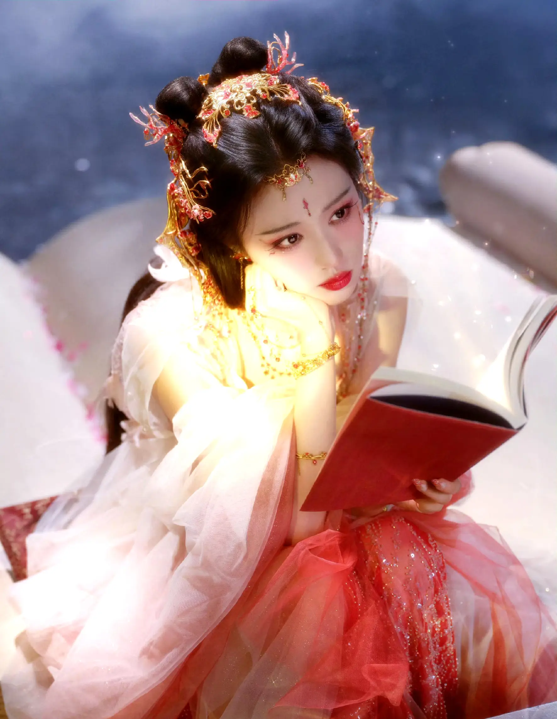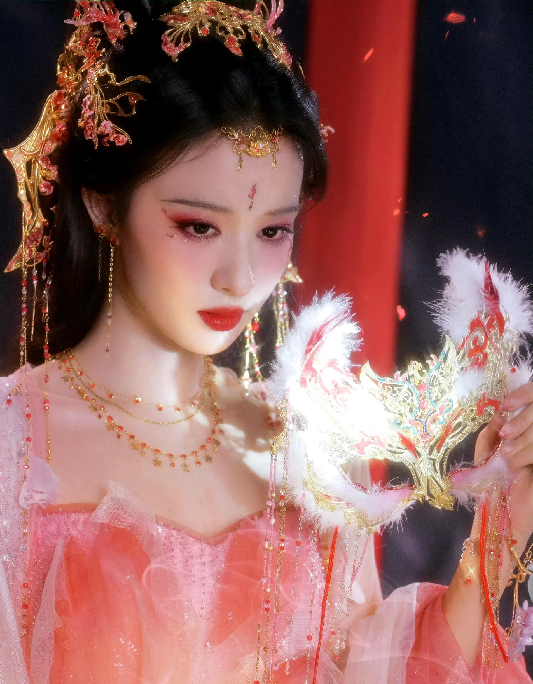 先吹爆王楚然的颜值和造型,这波真的是天选古装美人实锤! 剧中的庾晚音,造型堪称敦煌美学天花板,一袭飞天华服加身时,眉眼流转间媚骨天成,高冠红衣的造型往那一站,艳光四射直接美到观众失语,被全网直呼“天选妖妃”;而褪去华服换上素雅常服时,低头浅笑的温柔模样又瞬间切换成大家闺秀,眉眼间的清甜感直接拉满;就连蹙眉发呆、对着宫斗剧本碎碎念的样子,都自带一种易碎的娇憨感,每一个镜头都能截下来当壁纸。不得不说,王楚然的古装颜值真的太能打了,浓颜系的长相适配各种古装造型,美而不艳、媚而不俗,把庾晚音的贵气与灵动完美融合,难怪观众全程对着屏幕姨母笑,这颜值谁顶得住啊!